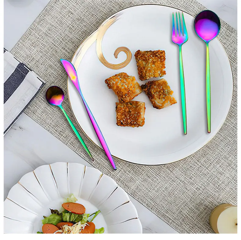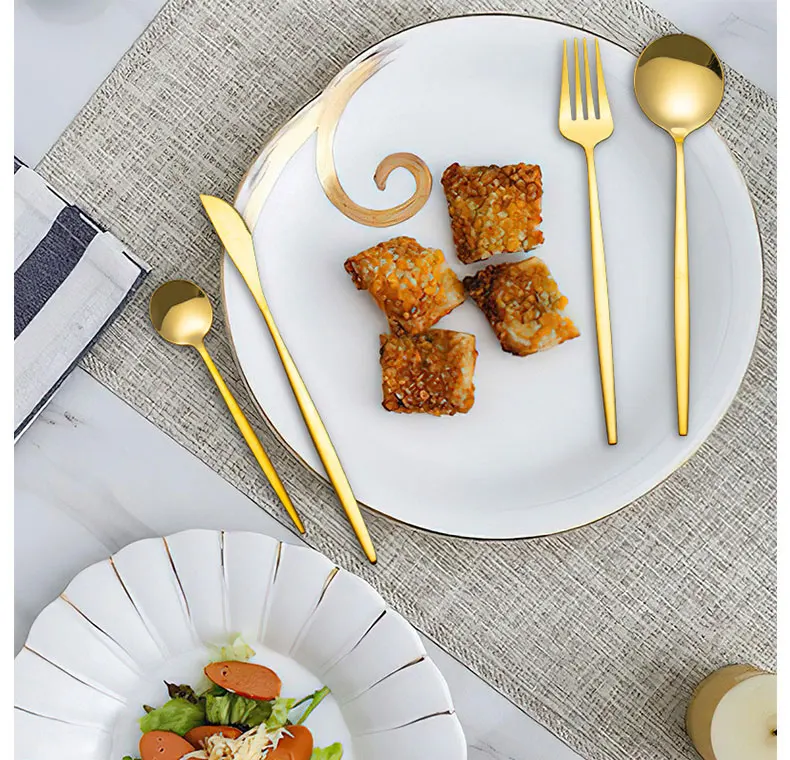 Набор золотых ложек, вилок, ножей, столовые приборы, столовая посуда, портативный кухонный гаджет из нержавеющей стали, кухонная утварь, полная столовая посуда
