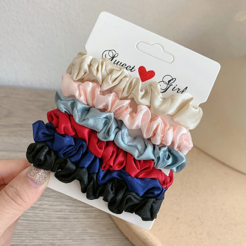 Эластичные резинки для волос 6 шт.лот для женщин, атласные шелковые резинки для волос, эластичная резинка для девочек, резинка для волос, держатели для конского хвоста, аксессуары для волос