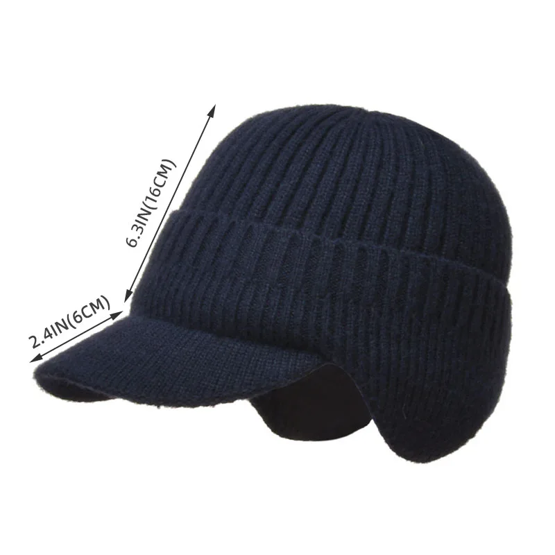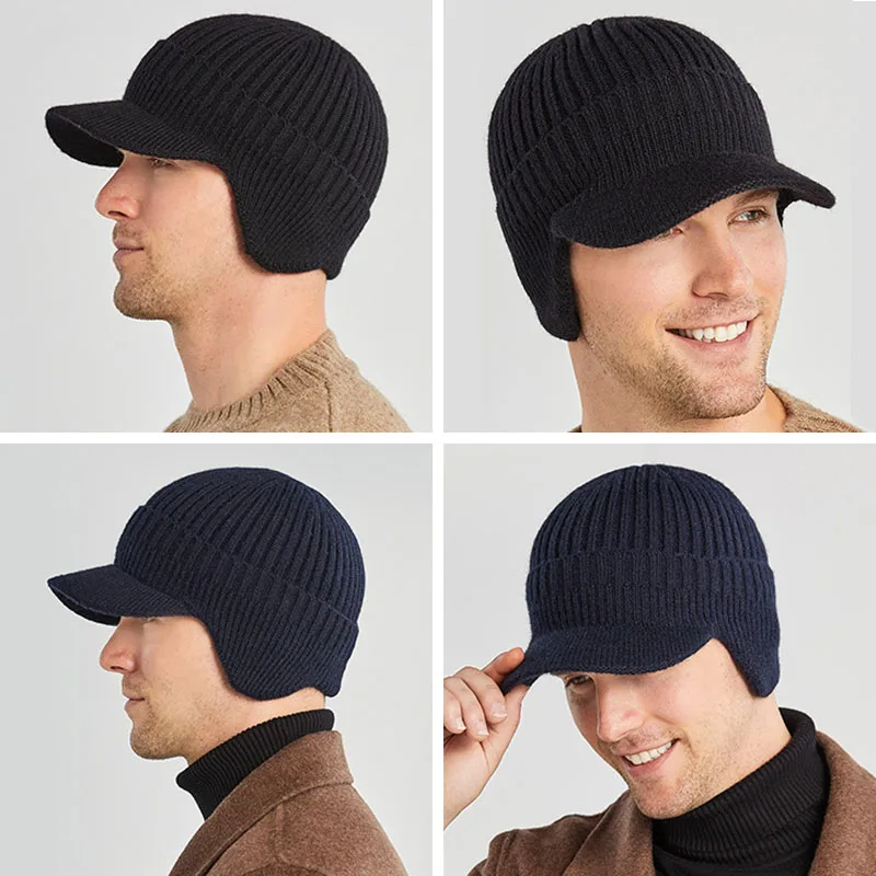 Зимняя мужская шапка с ушами, плотные вязаные шапки с широкими полями от солнца для мужчин, однотонные уличные шапки-ушанки, теплая Бейсболка