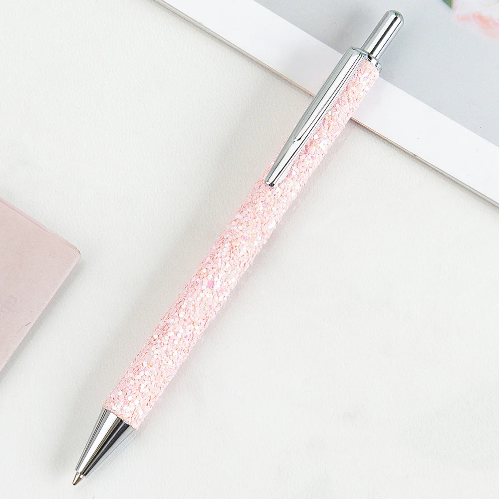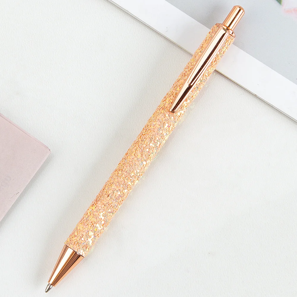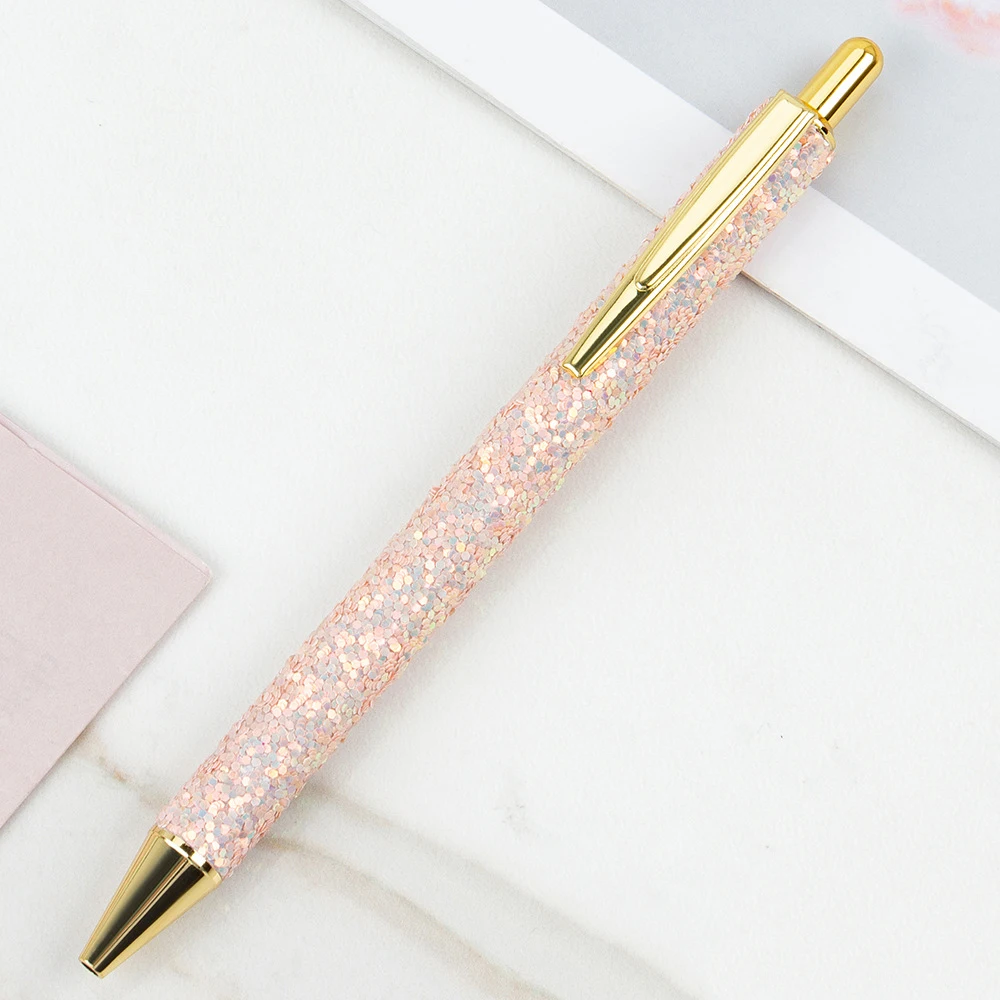 Металлическая ручка с блестками, шариковая ручка для письма, выдвижные гелевые ручки, многоцветный подарок, школьные принадлежности на заказ, офисные канцелярские принадлежности