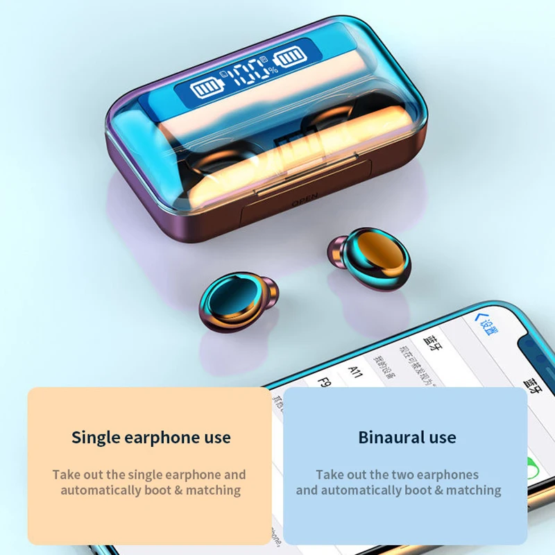 Особенности1, Bluetooth V5.0, Поддержка большинства устройств bluetooth и низкое энергопотребление2, 2200 мАч чехол для зарядки может полностью заряжать 2 наушника около 12 раз, предлагаем более 50 часов воспроизведения музыки3, с водонепроницаемой технологией, больше не нужно беспокоиться о воде и поте4, 8MMS двойной привод, наслаждайтесь 9D сильным глубоким басом и музыкальным звуком5, популярная функция сенсорного управления, поддержка коммутационных песен, телефонных звонков и голосовых вызовов.Списки аксессуаров:2 * Bluetooth наушники1 * чехол для зарядки1 * USB кабель1 * Руководство пользователя