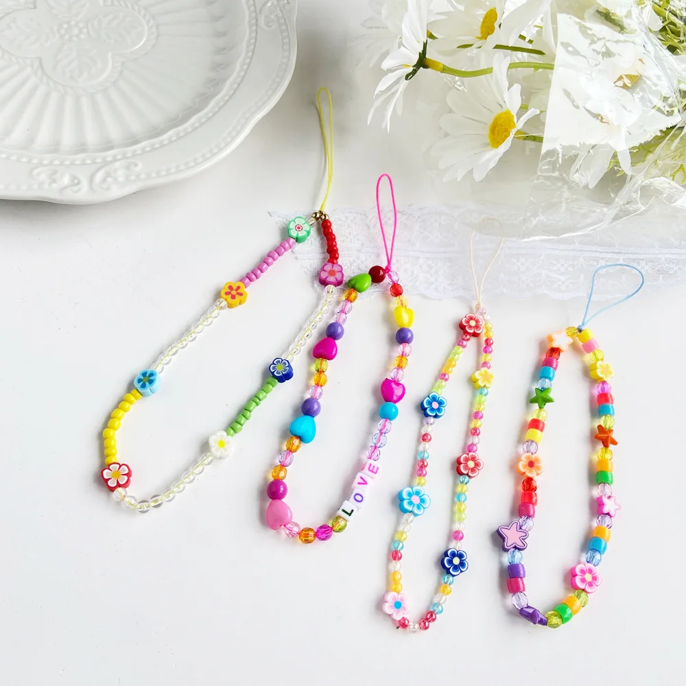 Яркая Мягкая Керамическая акриловая бусина со звездами и звездами, ремешок для мобильного телефона, ремешок с защитой от потери, богемный шнурок для ювелирных изделий