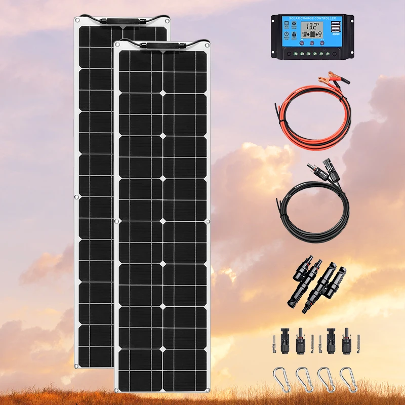 1. 2*50 Вт солнечные панели (1060*277 мм) 2. 1 комплект 3 м кабель с PV разъемом 3. 1 комплект 3 м кабель с зажимом типа крокодил 4. 1 * 10A контроллер 5. 1 комплект 2 в 1 адаптер и другие