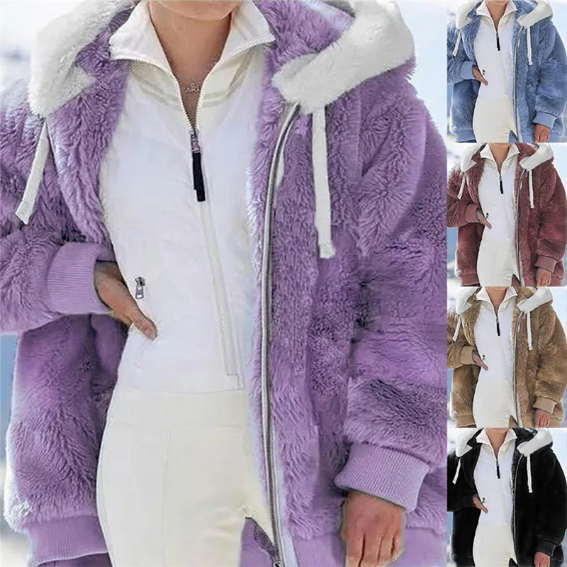 Женская куртка с капюшоном, теплая Свободная куртка с капюшоном, с начесом, на молнии, в европейском и американском стиле, Осень-зима 2021