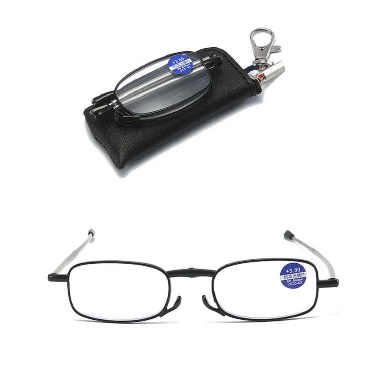 Складные мини-очки для чтения с брелоком для женщин и мужчин, очки для дальнозоркости с блокировкой сисветильник, увеличительные очки + 1,0 + 4,0