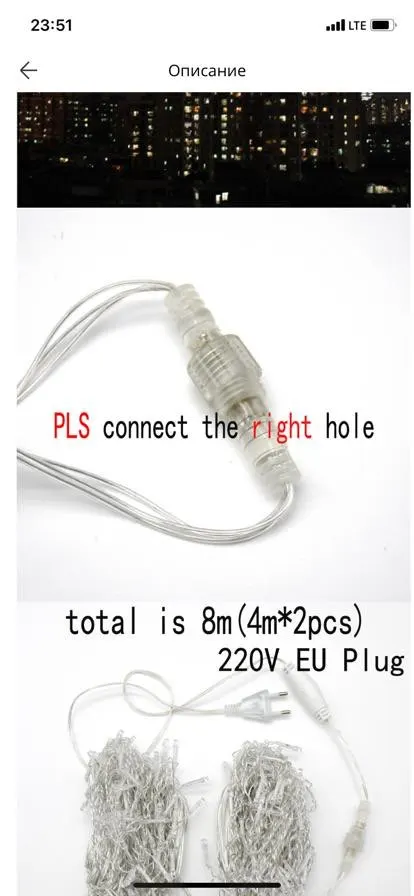 Заказал данную гирлянду к уже имеющейся. У старой подключение 3 контактами, у этой в описание и на фото подключение по 3 проводам. По факту данная гирлянда подключается по соединению 2 проводов. Нет возможности из соединить, открыл спор, алиэкспрес его закрыл не рассматривая, продавец не выходит на связь.