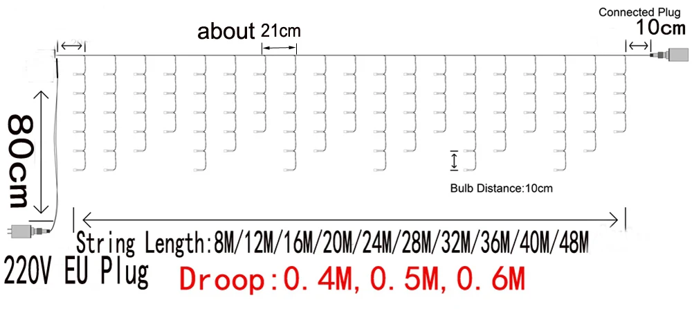 8 м-48 м водонепроницаемый наружный Рождественский светильник Droop 0,4-0,6 м светодиодный занавес сосулька струнный светильник s садовый торговый центр карниз декоративный светильник s