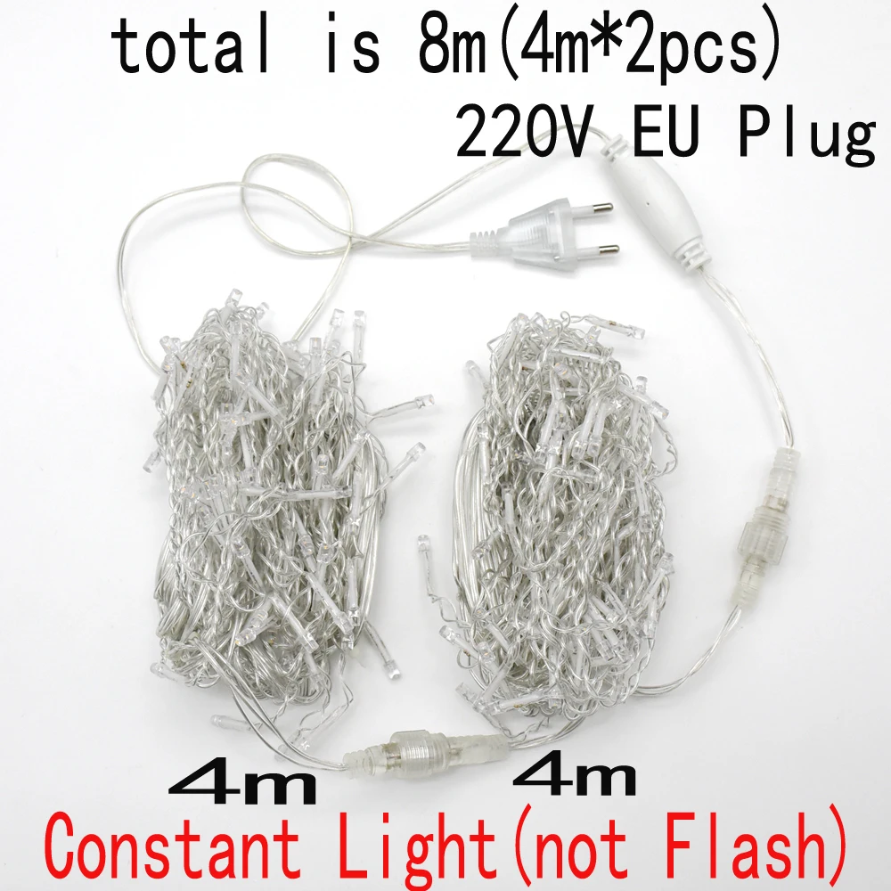 Водонепроницаемая Рождественская гирлянда, 8-48 м, свисающая светодиодная гирлянда-занавеска 0,4-0,6 м, гирлянда-сосулька, декоративное освещение для сада, дома