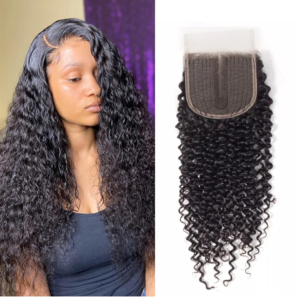 Кудрявые вьющиеся человеческие волосы 4x4, кружевная застежка, 100% человеческие волосы, Бразильская кудрявая кружевная застежка, T часть, кружевная застежка