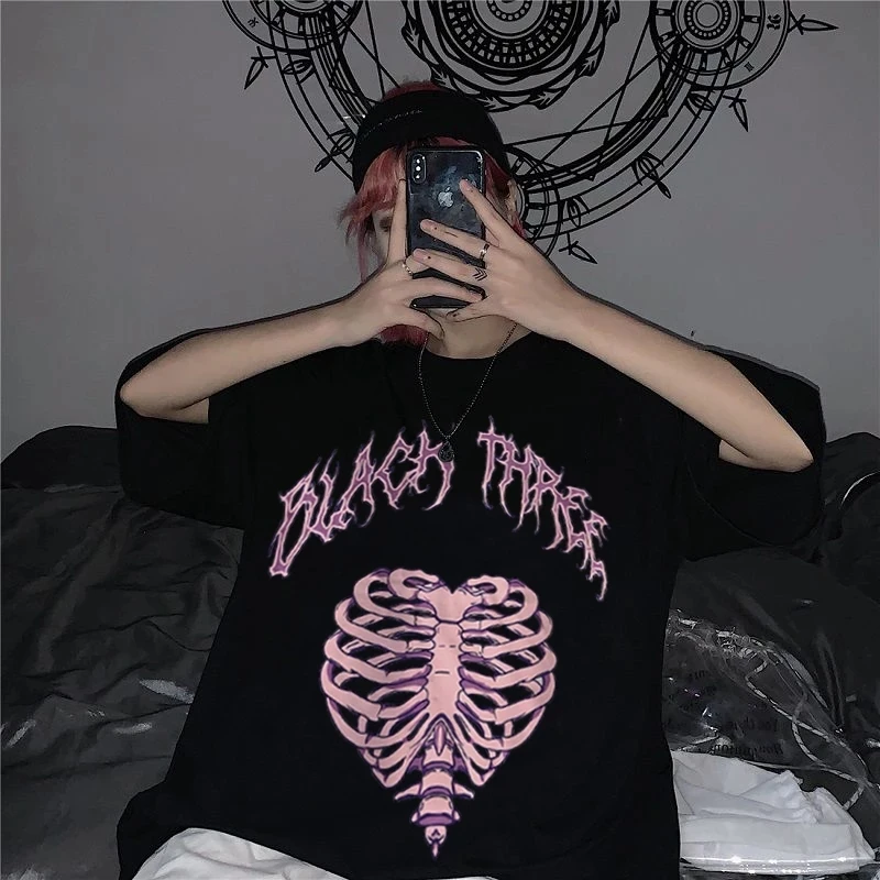 Женские футболки goth y2k, топы в стиле Харадзюку, с принтом на Хэллоуин, Диабло, свободные, с коротким рукавом, с рисунком аниме, Топ