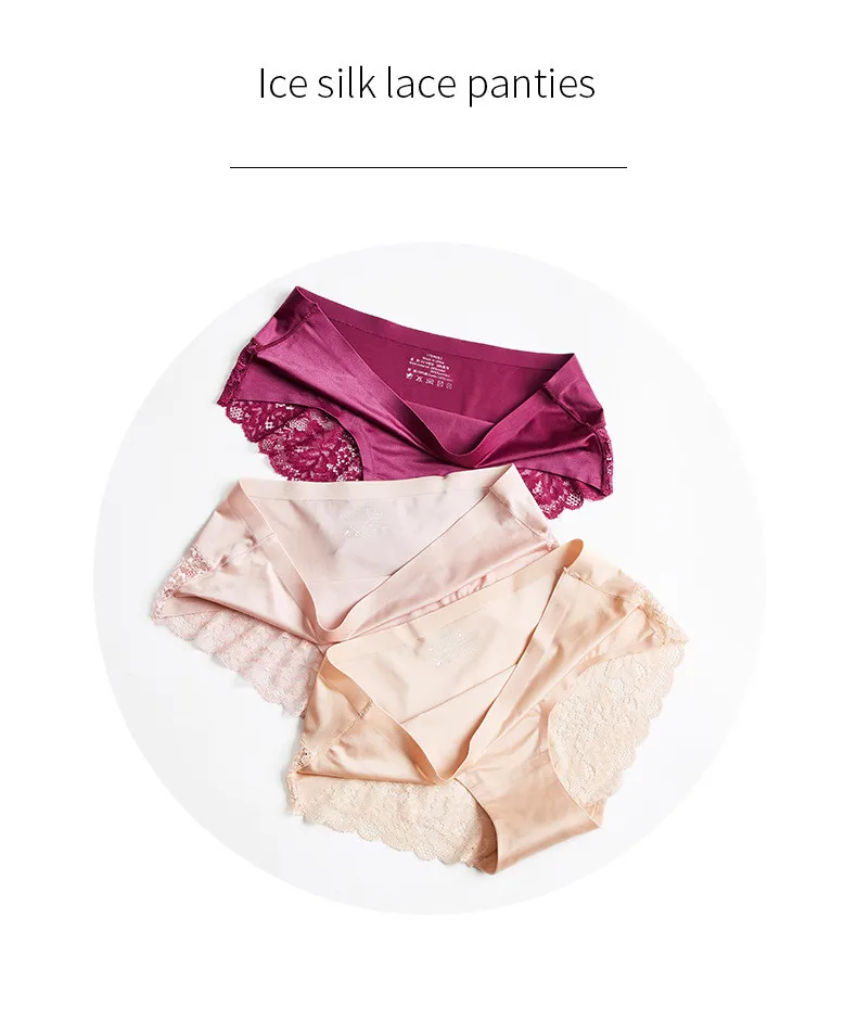 Кружевные женские трусики, ледяное шелковое французское бесшовное н...