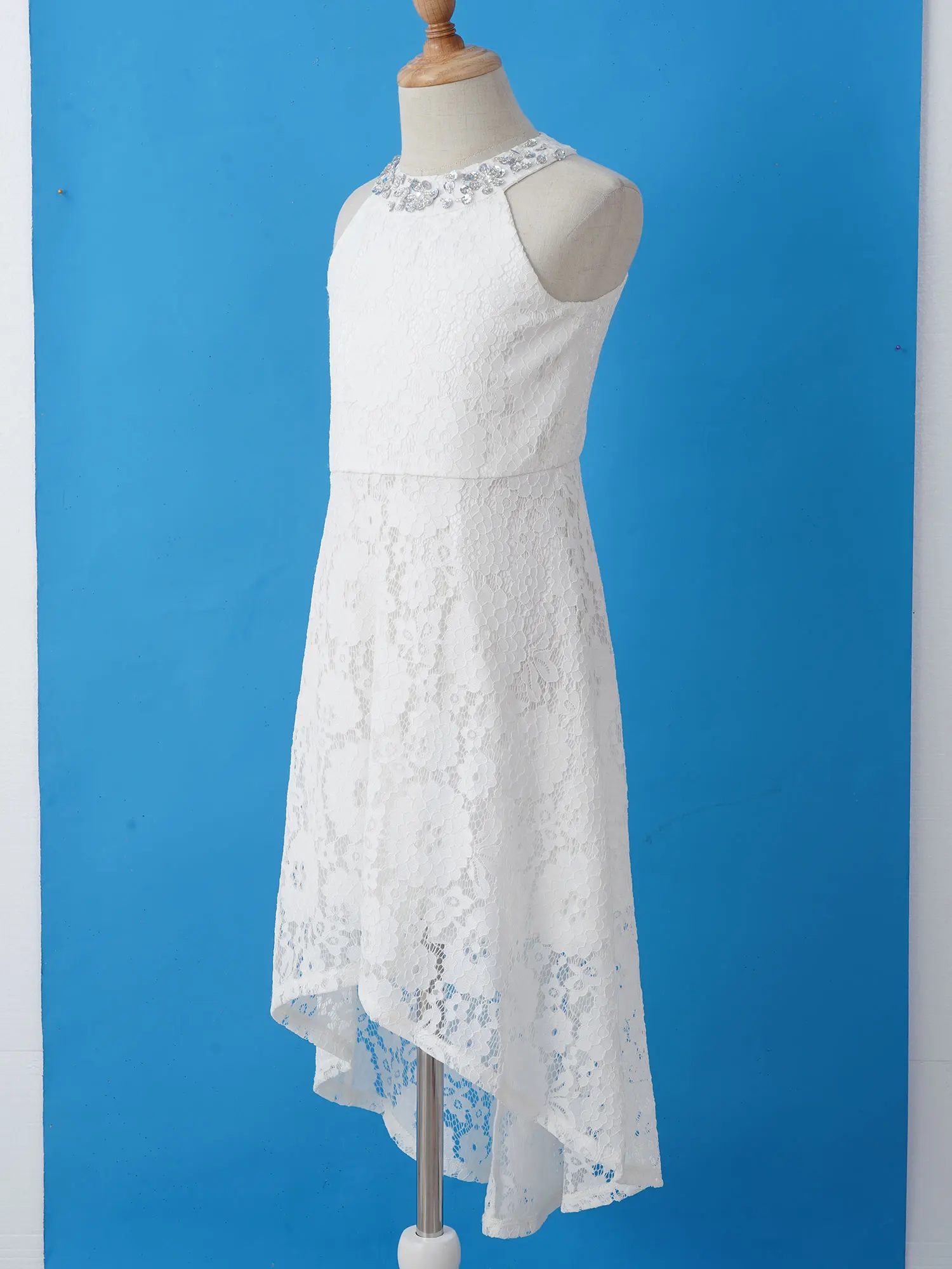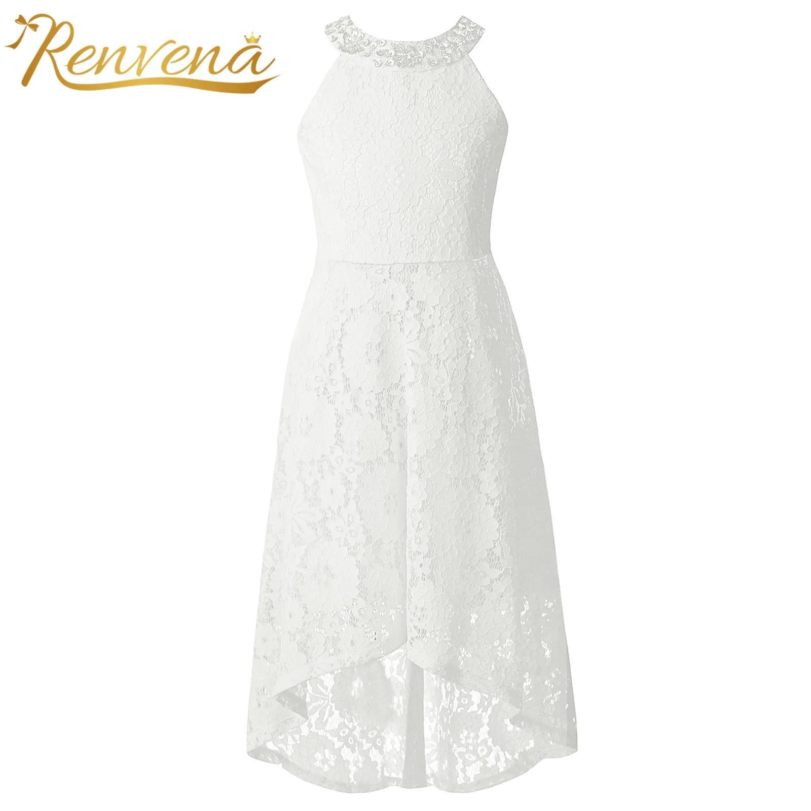Элегантное цветочное кружевное платье с лямкой на шее для девочек, детские платья для девочек, платье принцессы для свадебной вечеринки, платье для первого причастия