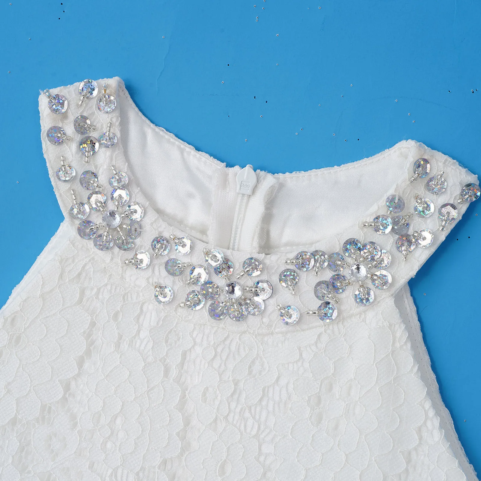 Комплект включает в себя: 1 платьеСостояние: Новый с биркойМатериал: Полиэстер, кружево, пайеткиЦвет: Белый (как показано на фотографии)