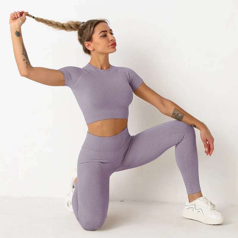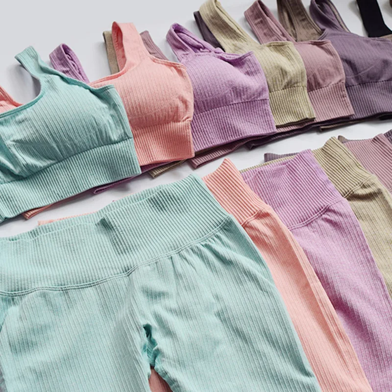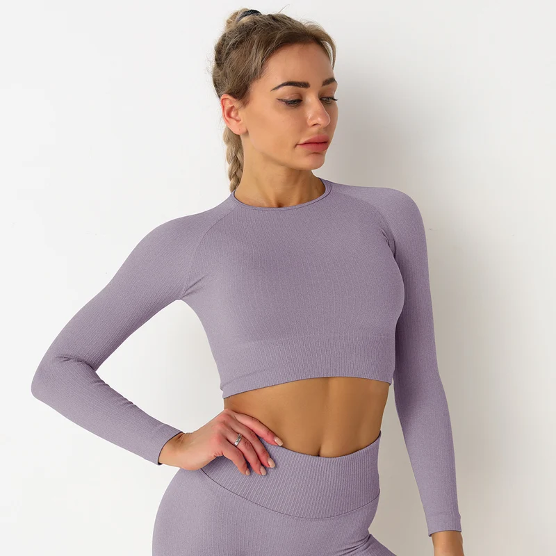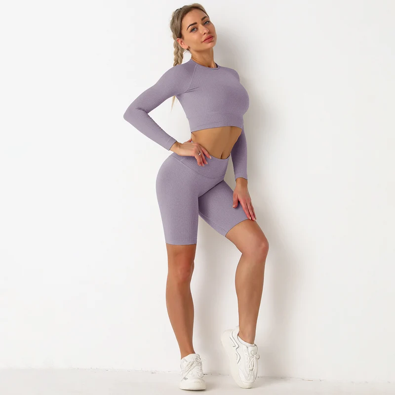 Женская спортивная одежда, комплект для йоги из 2 предметов, бесшовные комплекты для спортзала из 5 предметов, однотонные Топы с длинным рукавом, леггинсы с высокой талией, комплекты для спортзала