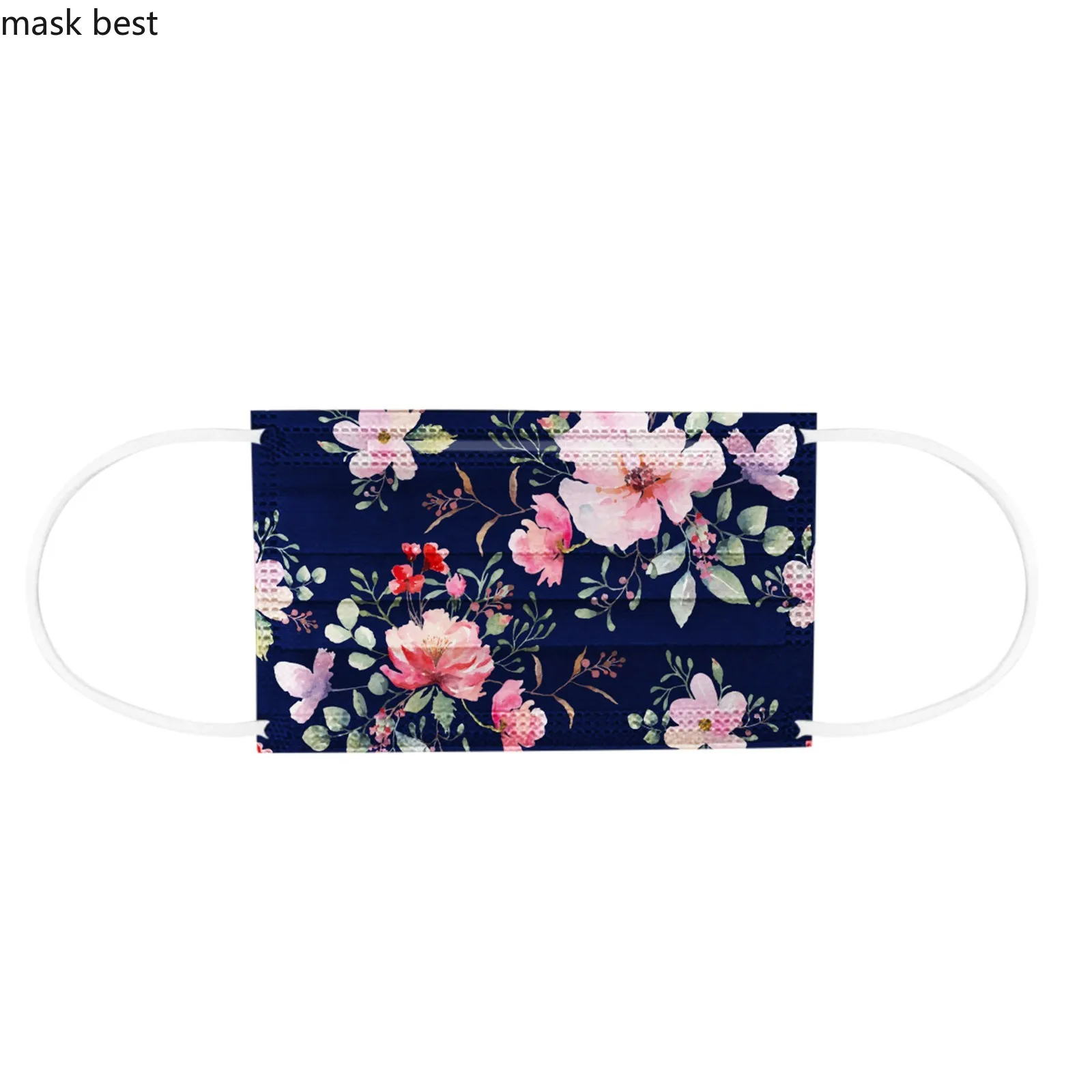 Маска для лица одноразовая трехслойная, с цветочным принтом, 10-50 шт.