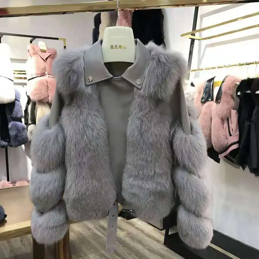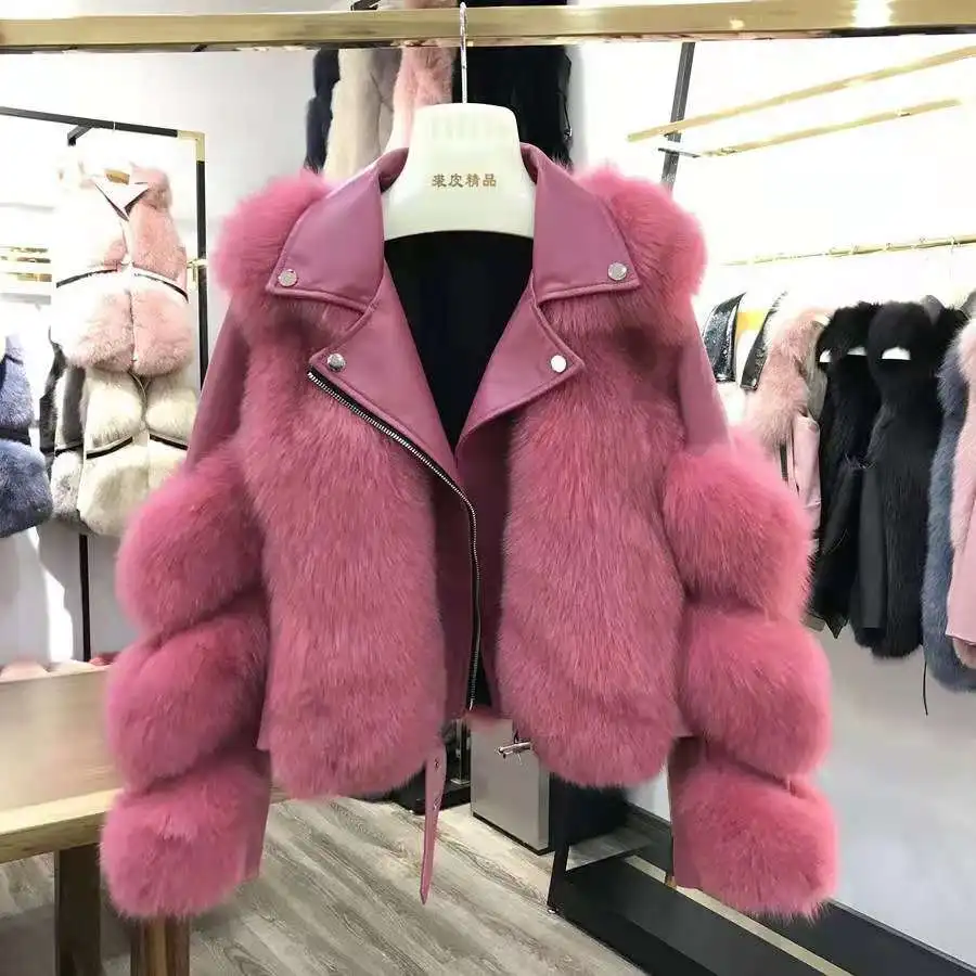 Женское пальто из искусственного меха, зимняя модная новинка 2021, мотоциклетные стильные роскошные кожаные куртки из лисьего меха, женские трендовые пальто