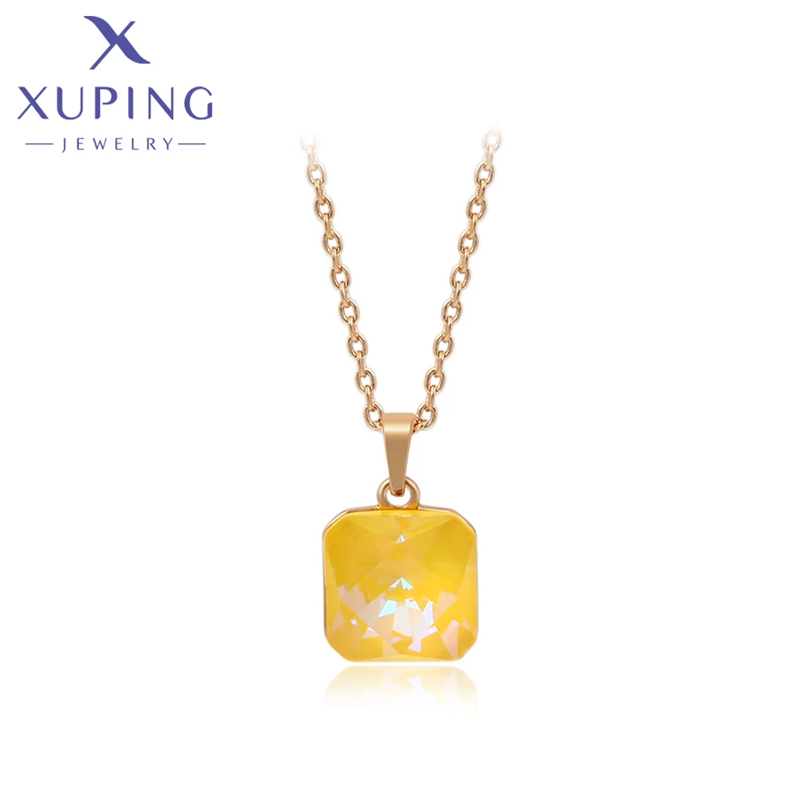 Xuping модные ювелирные изделия, новые модные квадратные кристаллы, ожерелье с кулоном золотого цвета A00718617