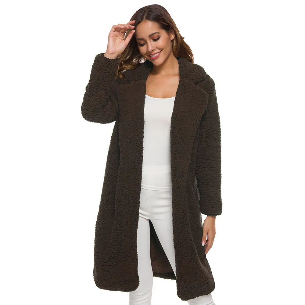 2021 женское длинное пальто из искусственного меха, однотонная верх...