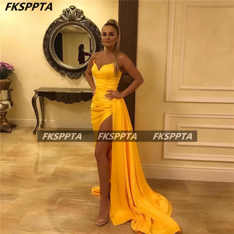 Золотисто-желтые длинные сексуальные платья 2021 для выпускного вечера с разрезом сердечком корсет на спине атласные женские Формальные платья для свадебной вечеринки