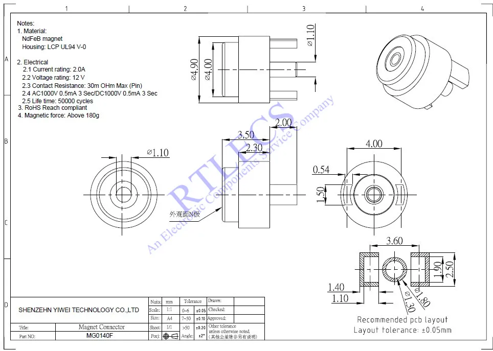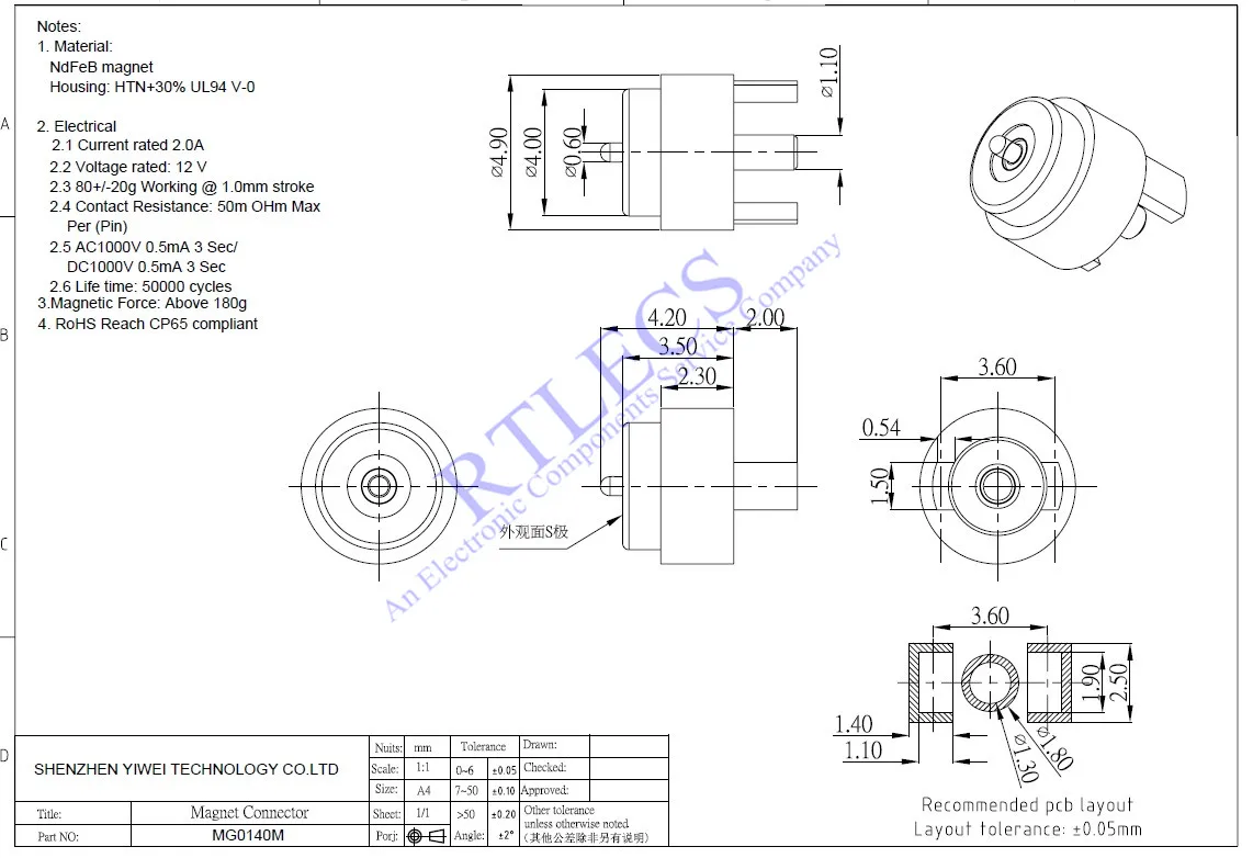 5 комплектов, Миниатюрный магнитный разъем Pogo диаметром 4, 0 мм, мужской, женский, 1 полюс Pogopin Power Charge 2A, медицинское переносное устройство