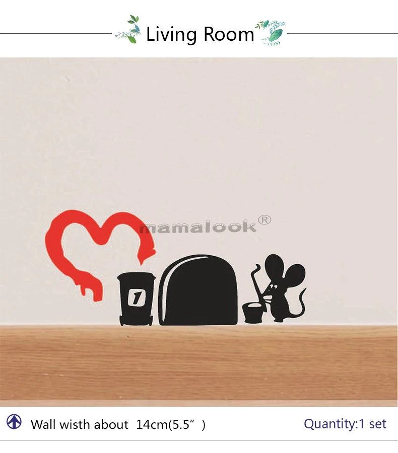 Funny Love Мышь отверстие наклейки на стену для детских комнат накл...