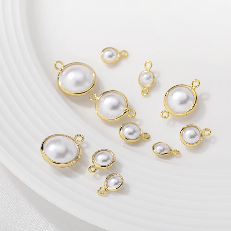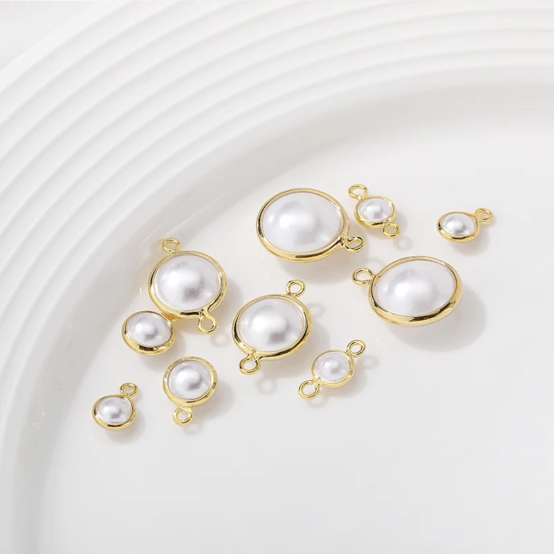 Круглые медные позолоченные жемчужные ракушки с имитацией жемчуга 14 к, разъем 10 шт.лот для сделай сам, модные Богемные аксессуары для изготовления ювелирных изделий
