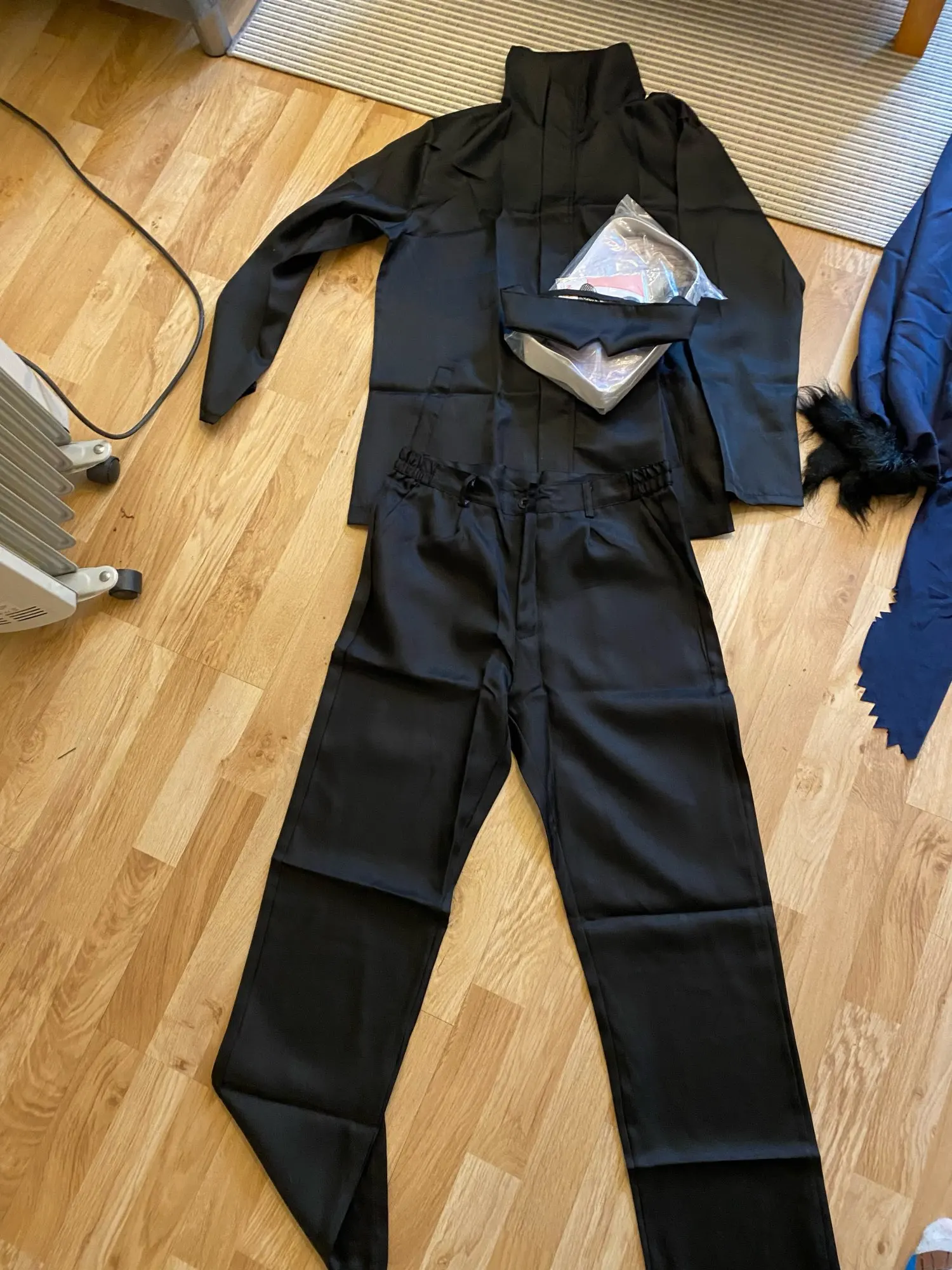 парик шикарен, прям отличный 9/10. Очки непонятные, то ли с дефектом носоупоры, не понятно 3/10 хорошо, что есть запасные. Повязка тоже самое, резинка не выполняет свои функции. Куртка торчало много ниток около молнии. По длине, немного маловата, в плане длины руковов и длины, а штаны как раз, но в поясе великоваты (Брал XL на свой рост 178) В целом парик спасает ситуацию.