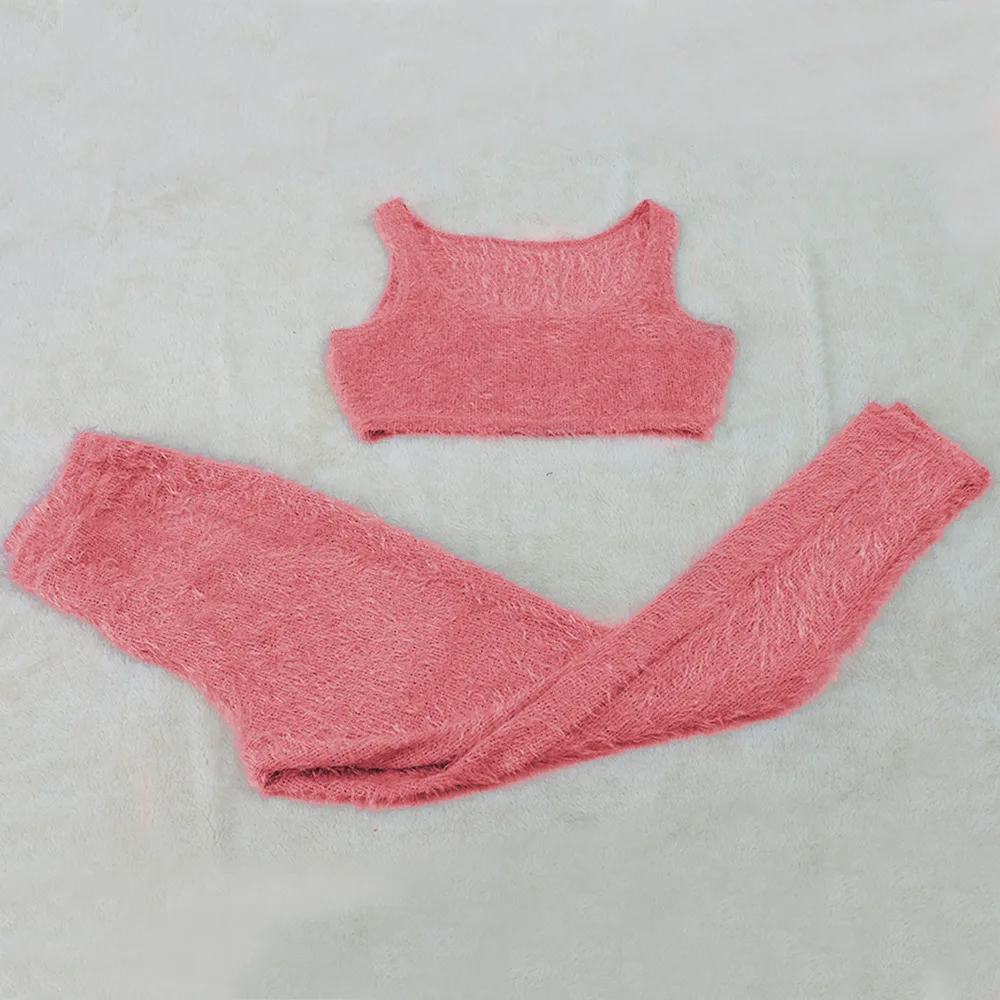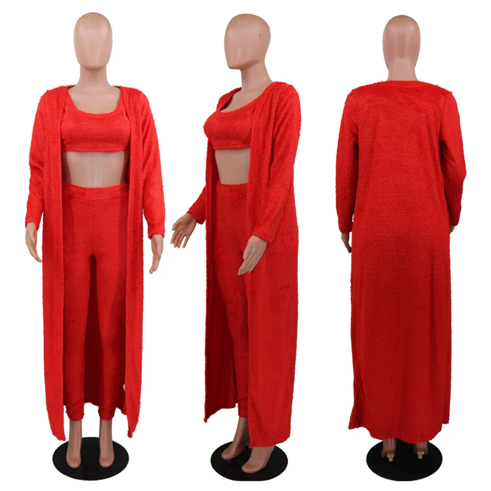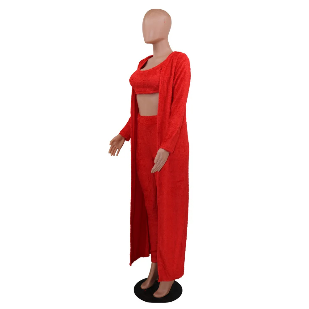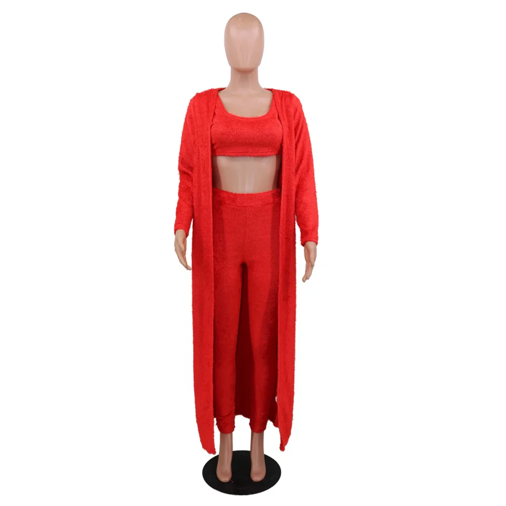 Женский комплект из 3 предметов, зимний сексуальный пушистый флисовый длинный кардиган с круглым вырезом, укороченный топ, штаны с высокой талией, комплект одежды для отдыха