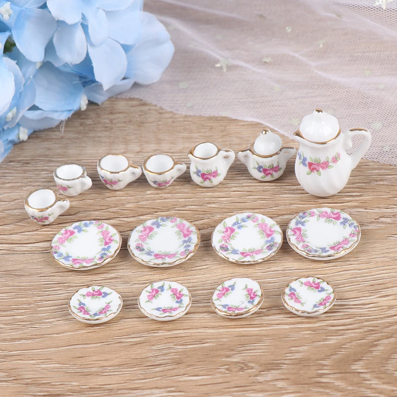 15 шт. миниатюрная посуда для кукольного домика, фарфоровые керамические чашки для кофе и чая, набор игрушек