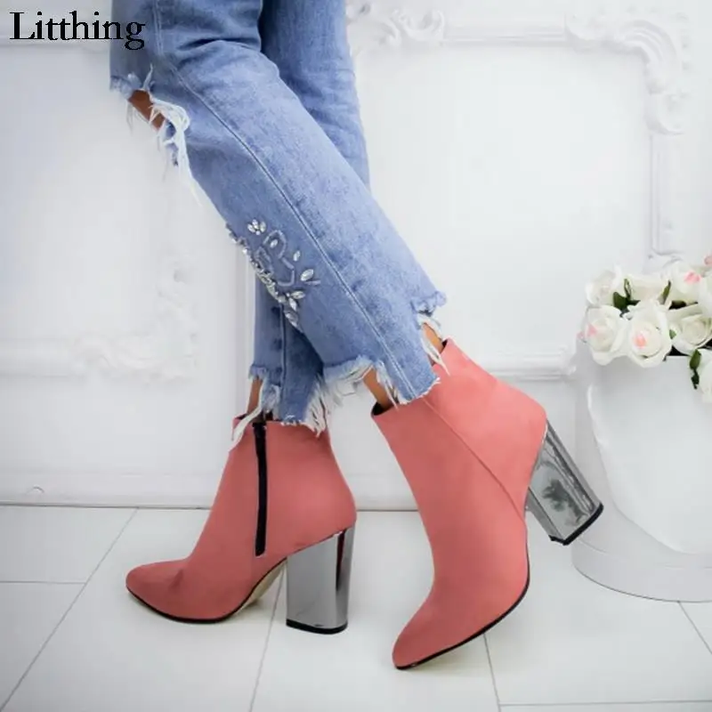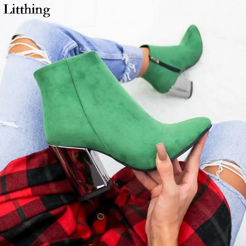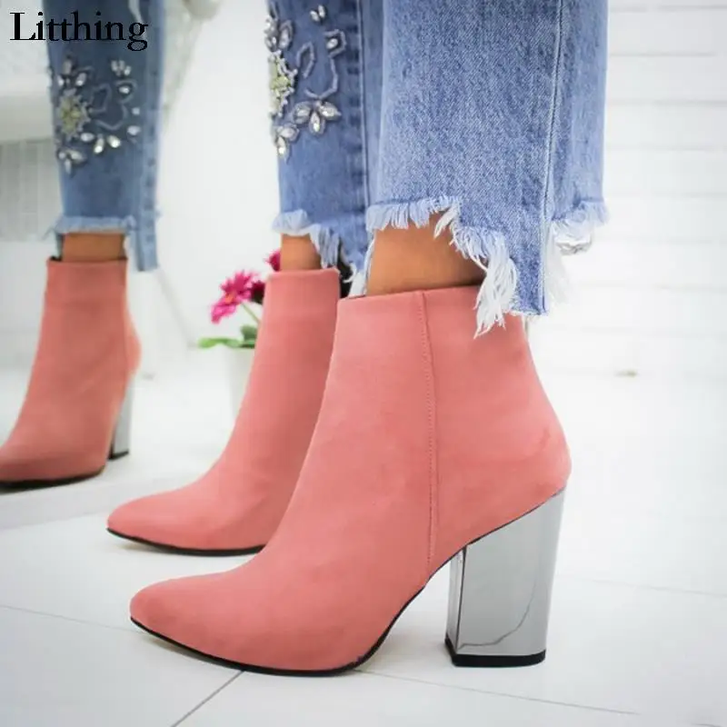 Женские ботильоны из флока, осенне-зимние ботинки, женские повседне...