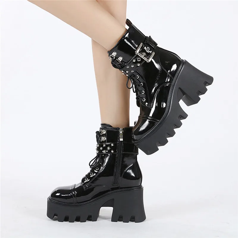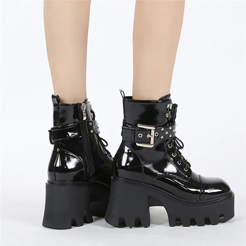 Ботинки женские из лакированной кожи, на платформе, высокий каблук,...