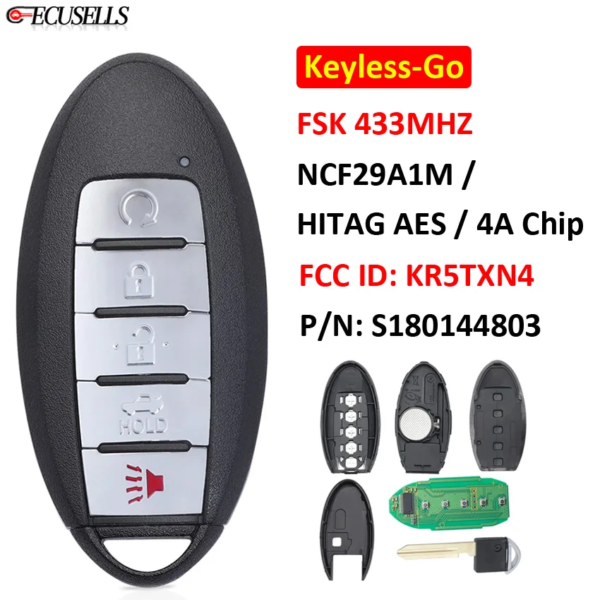 5 кнопочный ключ для автомобиля FSK 433Mhz NCF29A1M / HITAG AES / 4A Chip FCC ID: KR5TXN4 S180144803 для Nissan Altima