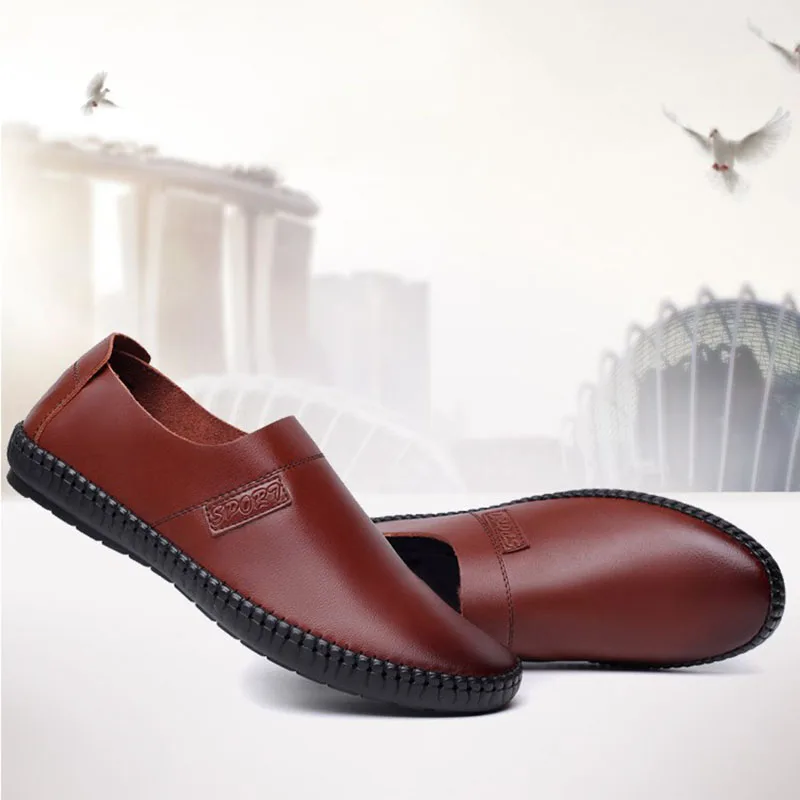 Мокасины мужские кожаные на плоской подошве, без застежки, лоферы, ...