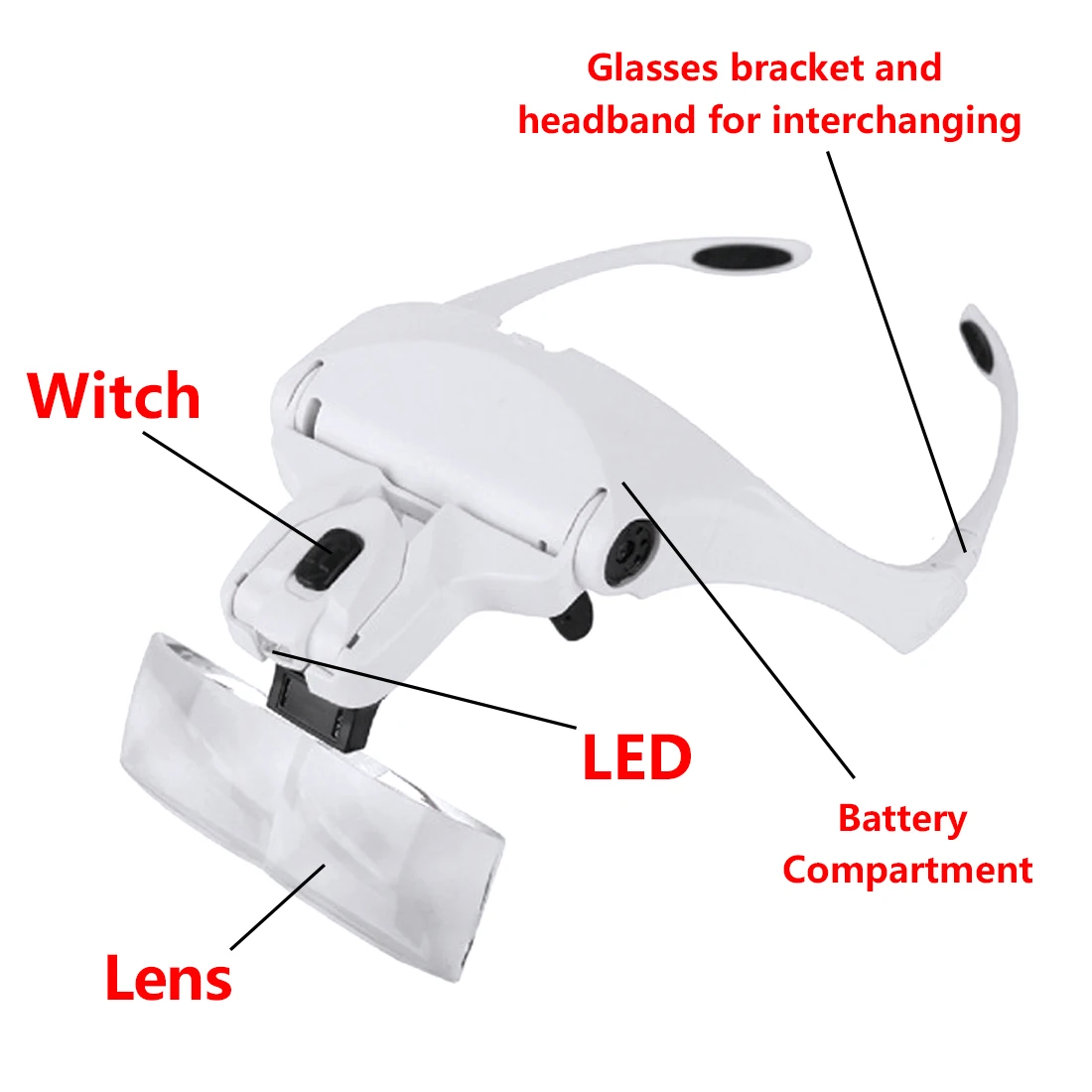 Увеличительное стекло на голову, лупа светодиодный ная лампа со сменными линзами, 5 линз, увеличительное стекло с увеличением в 1,0x1,5x2,0x2,5x3,5x es
