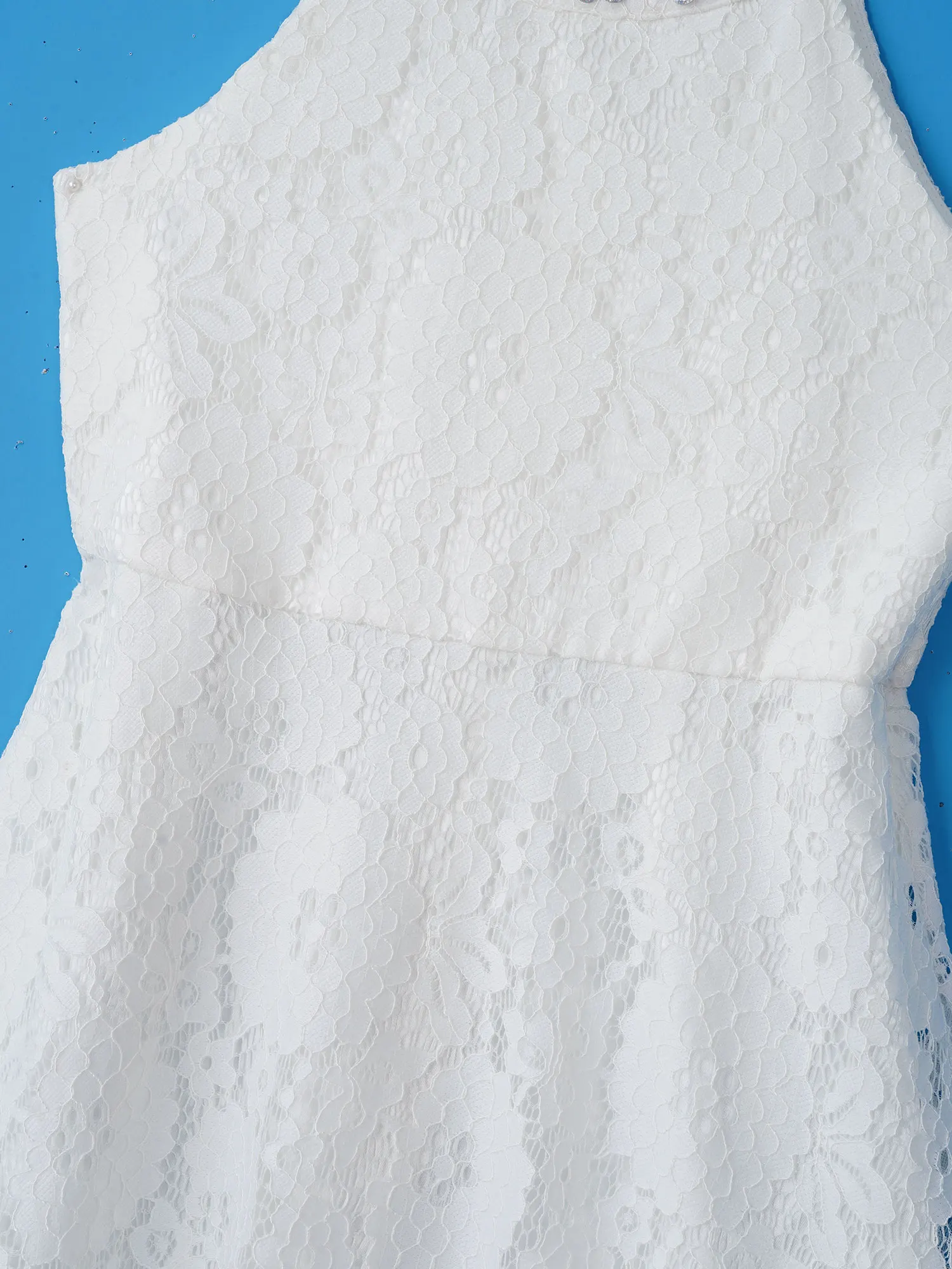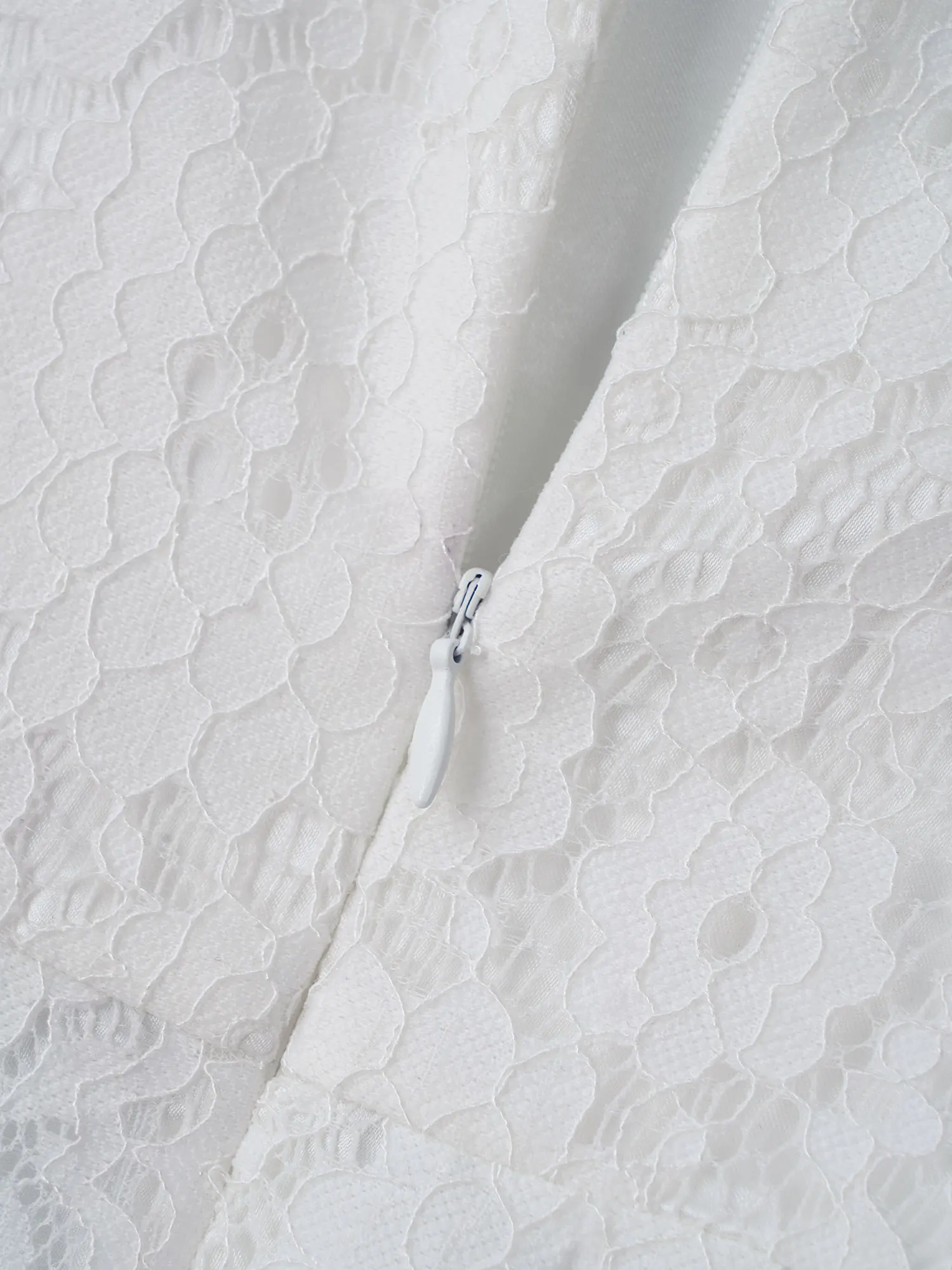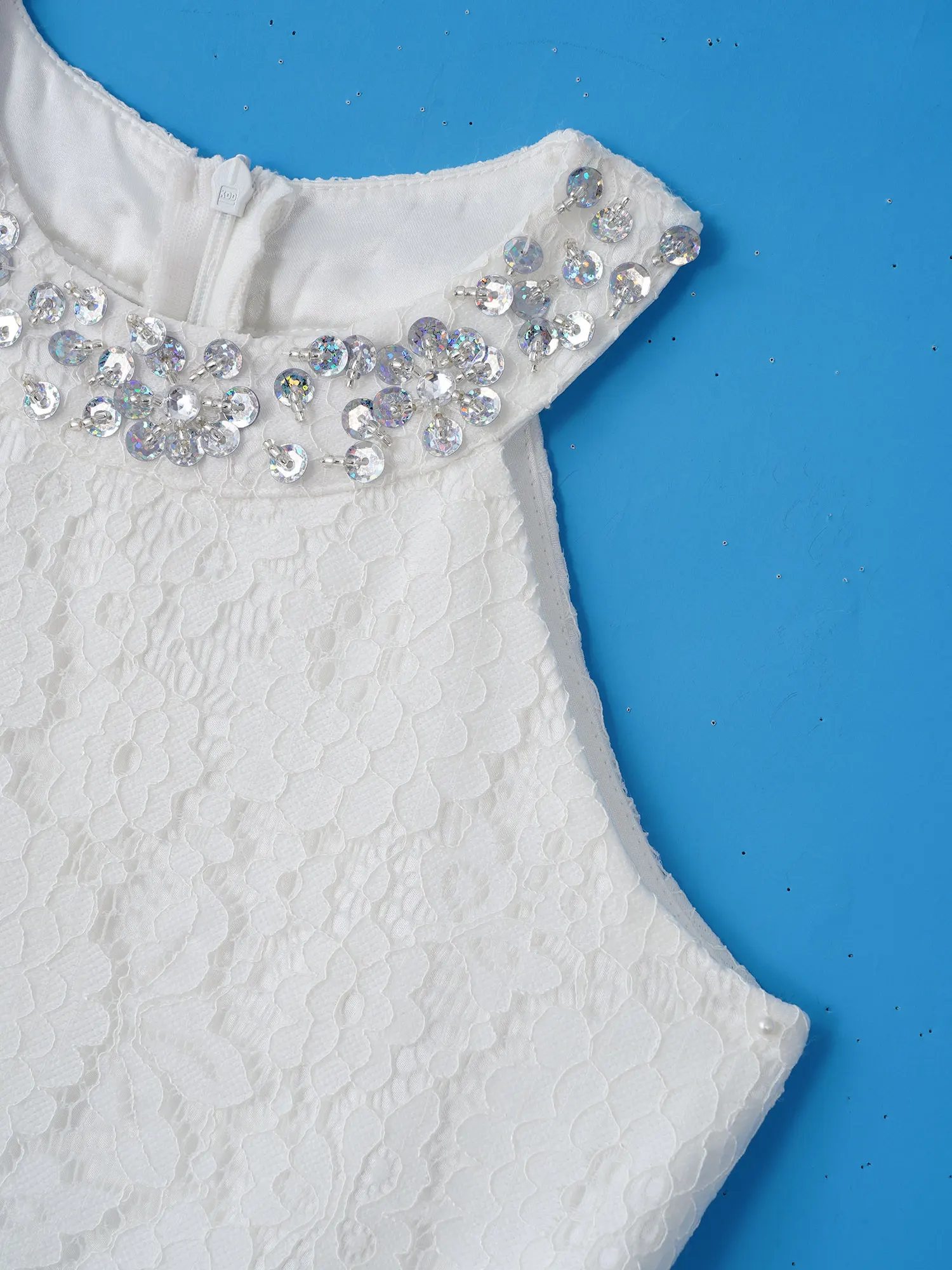 Комплект включает в себя: 1 платье Состояние: Новый с биркой Материал: Полиэстер, кружево, пайетки Цвет: Белый (как показано на фотографии)