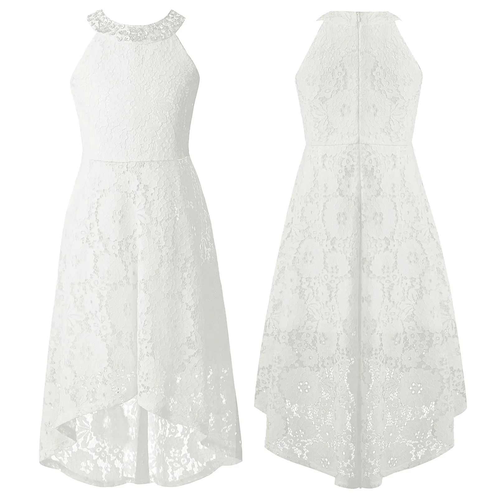 Особенности: Детское блестящее кружевное платье с блестками и цветочным узором для девочек однотонное платье без рукавов с вырезом на шее и высоким низом, вечерние платья на день рождения. Изготовлено из высококачественного полиэфирного смесового материала, удобная, дышащая, приятная для кожи и не вызывает раздражения для кожи девочки, мягкая на ощупь и в носке. Таблица размеров означает возраст для девочек, но только для общего руководства. Рекомендуется ручная стирка, не гладить и не отбеливать. Однотонное платье с лямкой на шее, без рукавов, с низким подолом, с цветочным кружевным слоем и мягкой подкладкой, блестящими пайетками и бисером вокруг горловины, застежкой-молнией сзади. Отлично подходит для вечерние, театрализованного праздника, на свадьбу, на день рождения, праздник, путешествий, а также для школы, фон для фотосъемки, танцы, коэффициент полезного действия, ежедневного ношения или в других случаях.