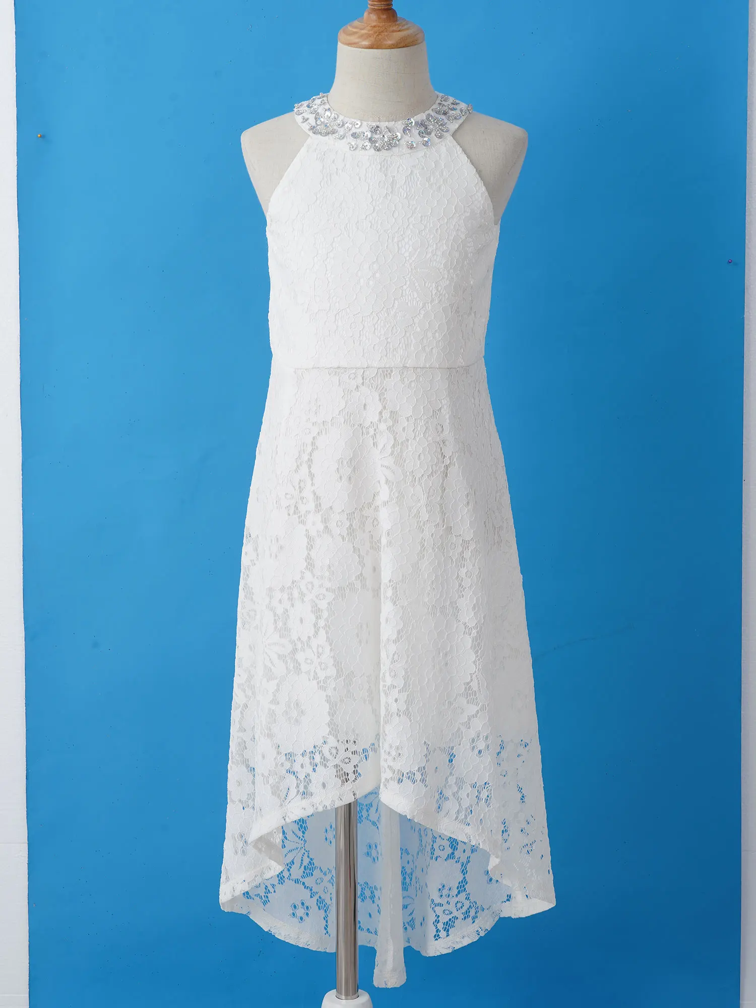 Детское элегантное цветочное кружевное платье с лямкой на шее, Детские платья для девочек, платье принцессы для свадебной вечеринки, одежда для первого причастия