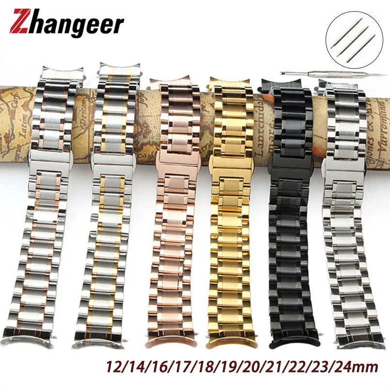Ремешок из нержавеющей стали для наручных часов, изогнутый браслет с пряжкой-бабочкой, 12 мм 14 мм 16 мм 17 мм 18 мм 19 мм 20 мм 21 мм 22 мм 23 мм 24 мм