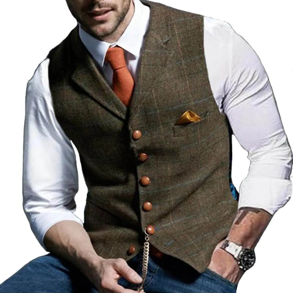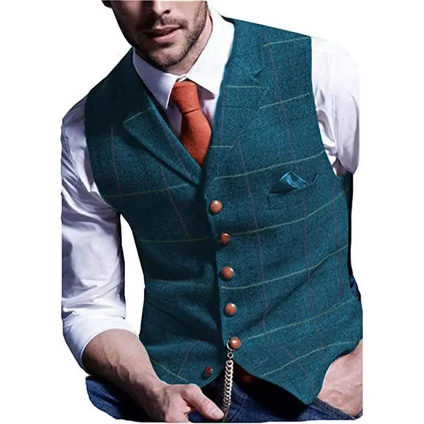 Мужской Клетчатый жилет, твидовый шерстяной жилет, приталенный клет...
