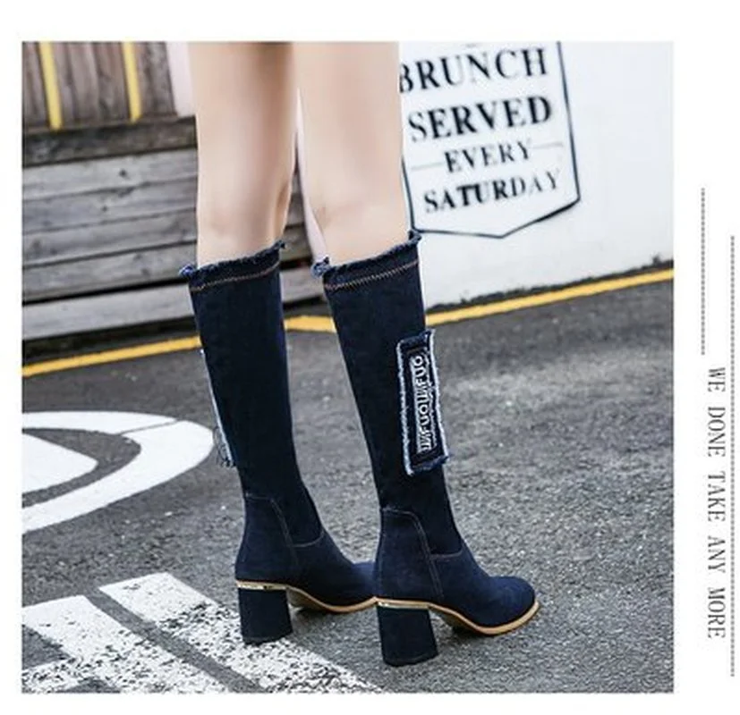 Женские джинсовые сапоги выше колена, повседневные длинные сапоги н...