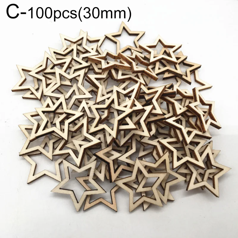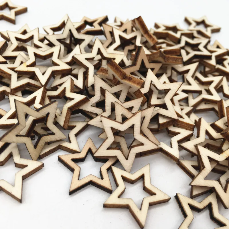 Полые деревянные чипы с пятиконечными звездами, 102030 мм, 100 штук дерева, ручные аксессуары, аксессуары сделай сам, оптовая продажа