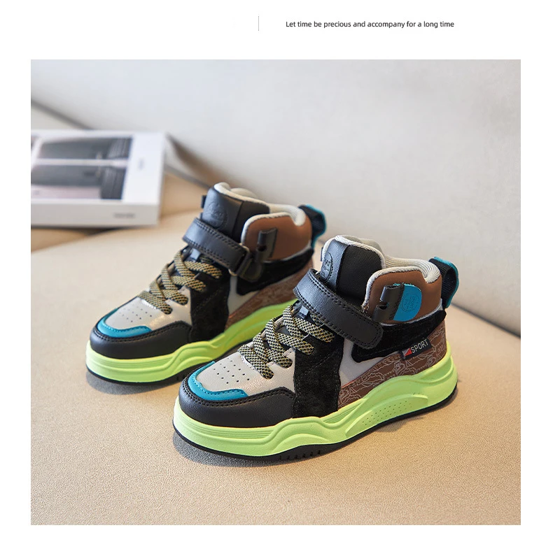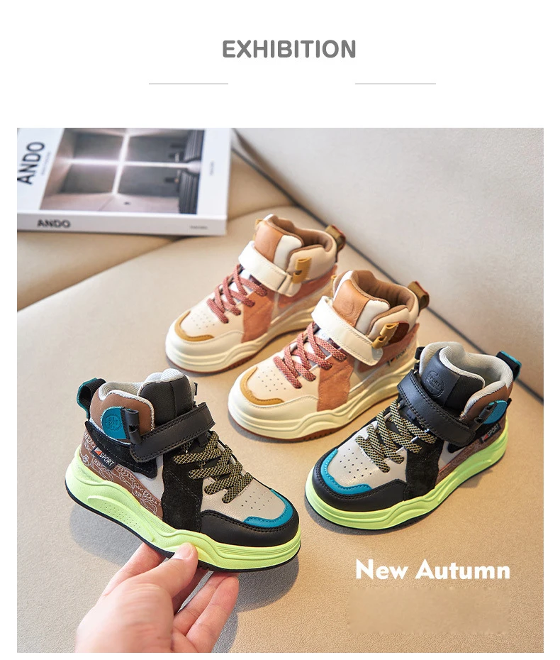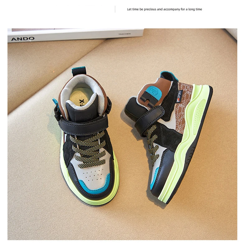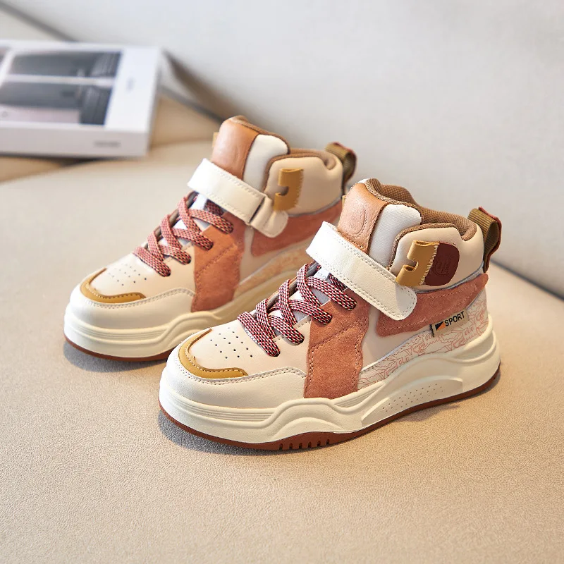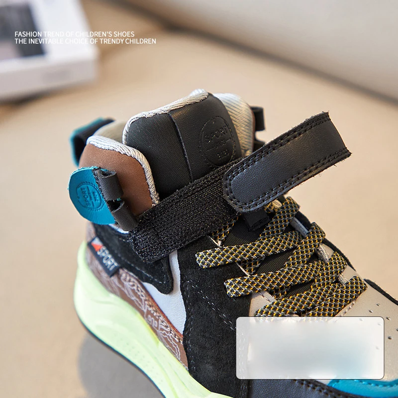 Осенние детские высокие спортивные кроссовки; Обувь из натуральной кожи для маленьких мальчиков; Детские Брендовые повседневные кроссовки; Кроссовки для девочек