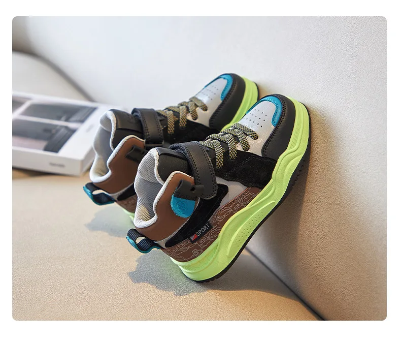 Кроссовки детские из натуральной кожи, массивные, Брендовые спортив...