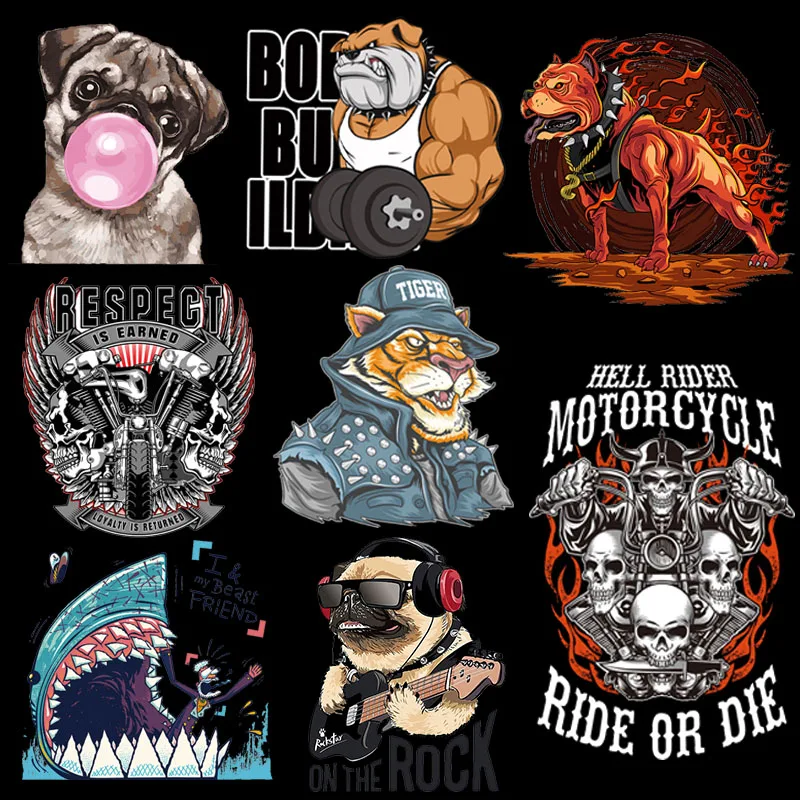 Термонаклейки для одежды с принтом собаки Шарпея, мотоцикла, байкера
