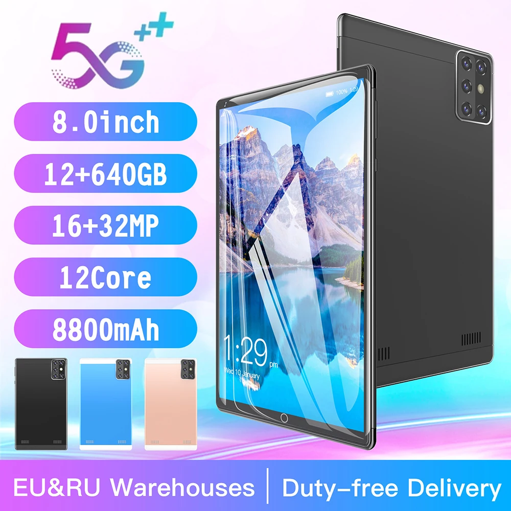 Новинка 2021 8-дюймовый планшетный ПК 12 + 640 Гб поддерживает многоязычный планшет с двумя sim-картами и двойным режимом ожидания Android 10,0