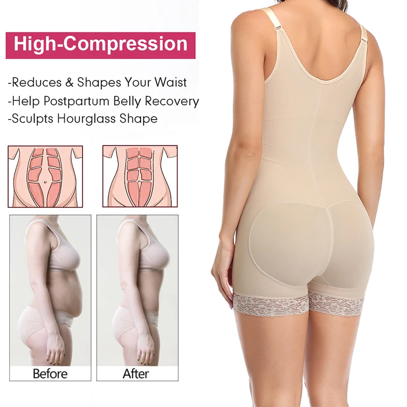 Мягкие и стройнящие ткани: высокий компрессионный облегающий костюм, короткий стиль, задние подъемные панели, которые улучшают вашу заднюю часть для круглой формы, Ультра-мягкий силикон, кружевной дизайн для шитья. Прочная компрессионная ткань, чтобы комфортно, но эффективно лепить ваше тело от спины и талии до живота и бедер. Мягкая подкладка обеспечивает комфорт и ласкает кожу.