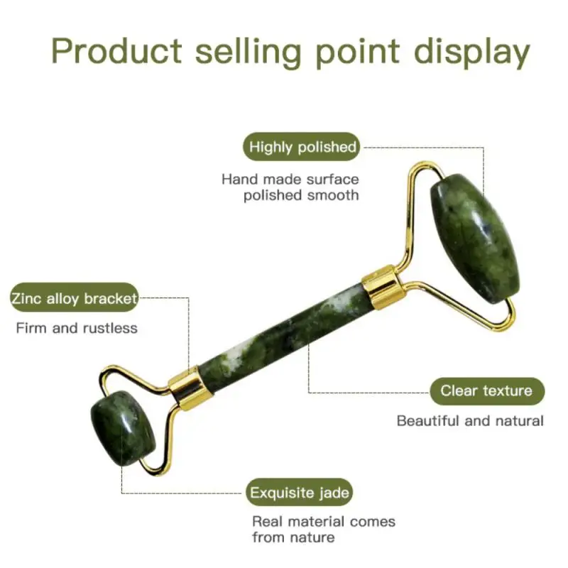 Ролик для массажа лица Натуральный Нефритовый камень Guasha скребок для доски Set, двойная голова, подтяжка лица, расслабление тела, похудение, потеря веса