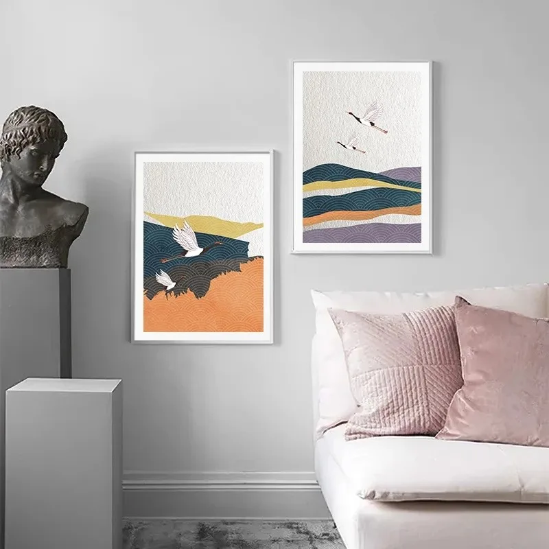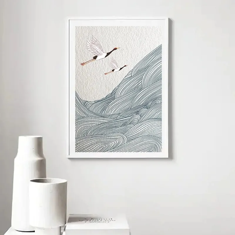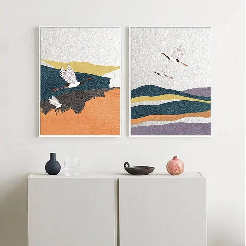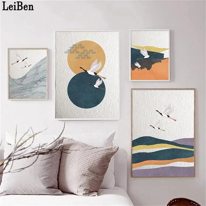Луна Летающий журавль иллюстрация холст постер абстрактная японская винтажная живопись искусство фотография стены нордический домашний декор