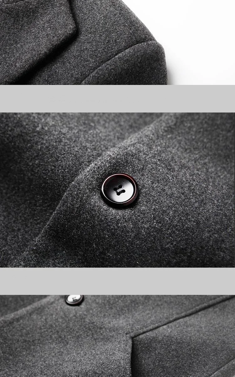 Мужское шерстяное пальто с отложным воротником, осенне-зимнее пальт...