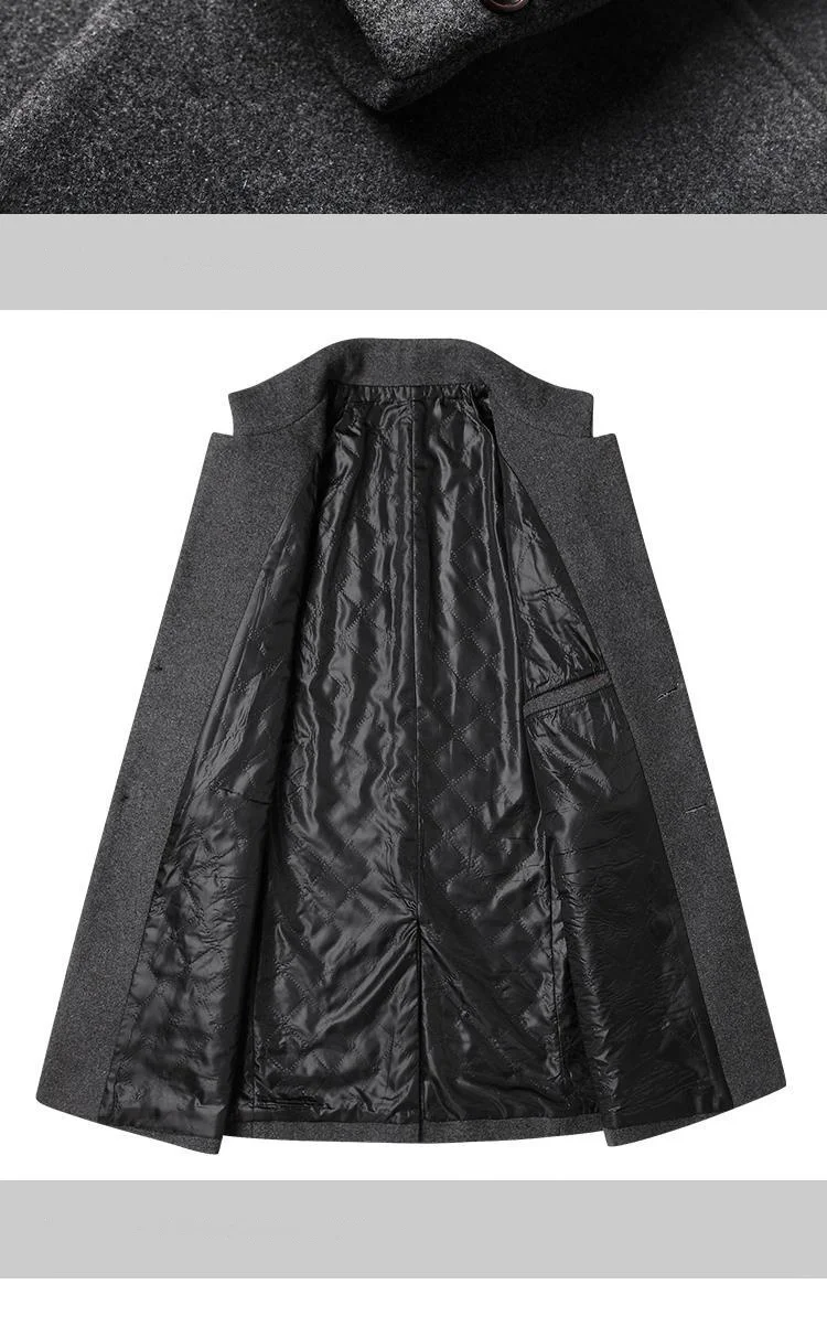 Осеньзима, новинка, однотонная мужская шерстяная куртка средней дли...